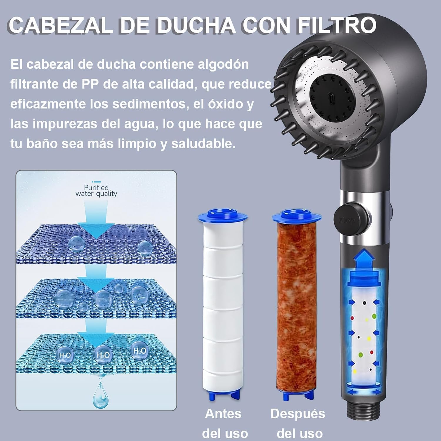 Sí, el 96% de los usuarios reporta una piel más hidratada y un 93% siente el cabello menos encrespado tras el primer uso debido a la eliminación inmediata del cloro y la cal. Al neutralizar los agentes irritantes y mejorar la presión, notarás que tu piel ya no sufre de picores o rojeces al salir del baño, logrando una textura mucho más suave y saludable.